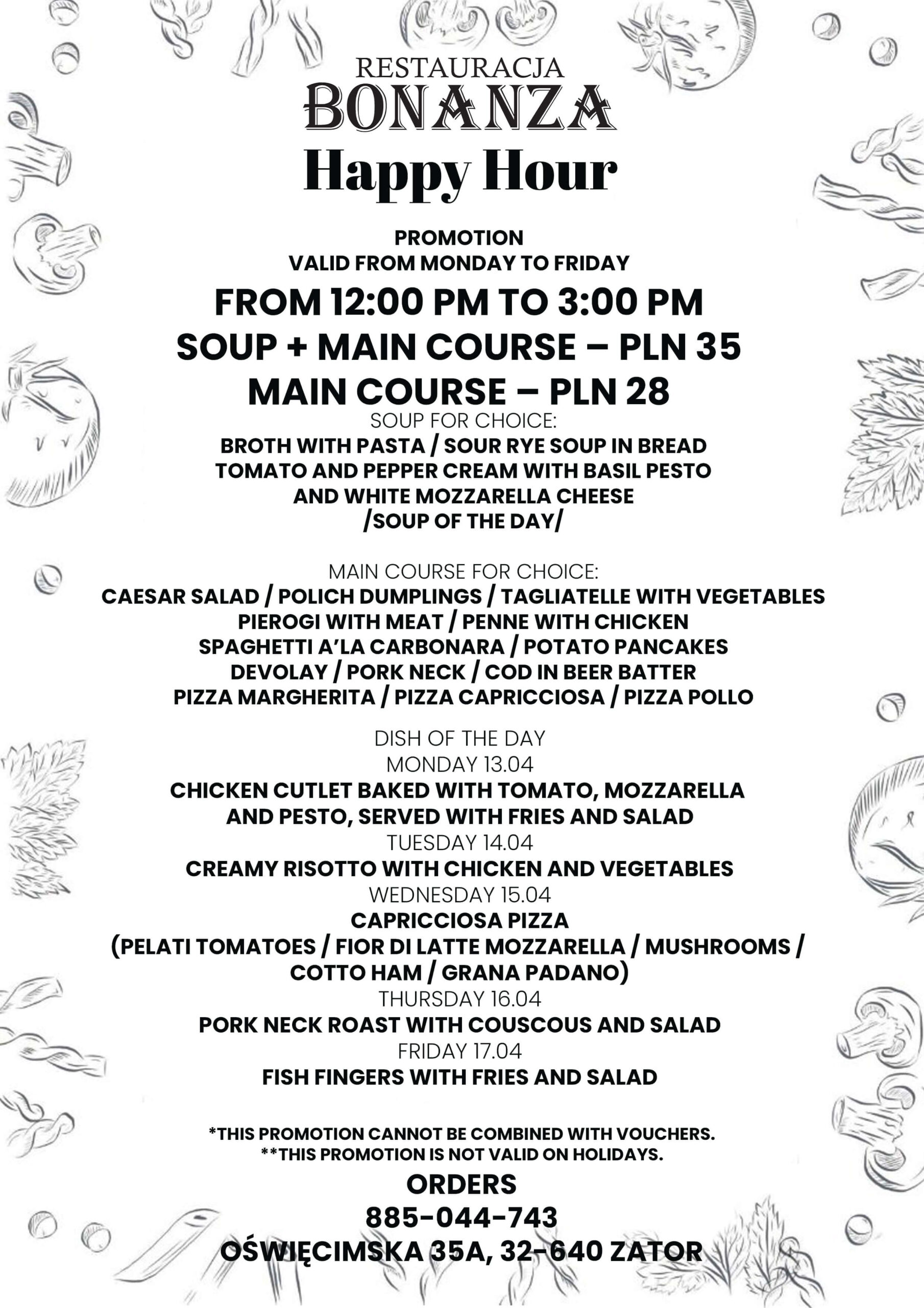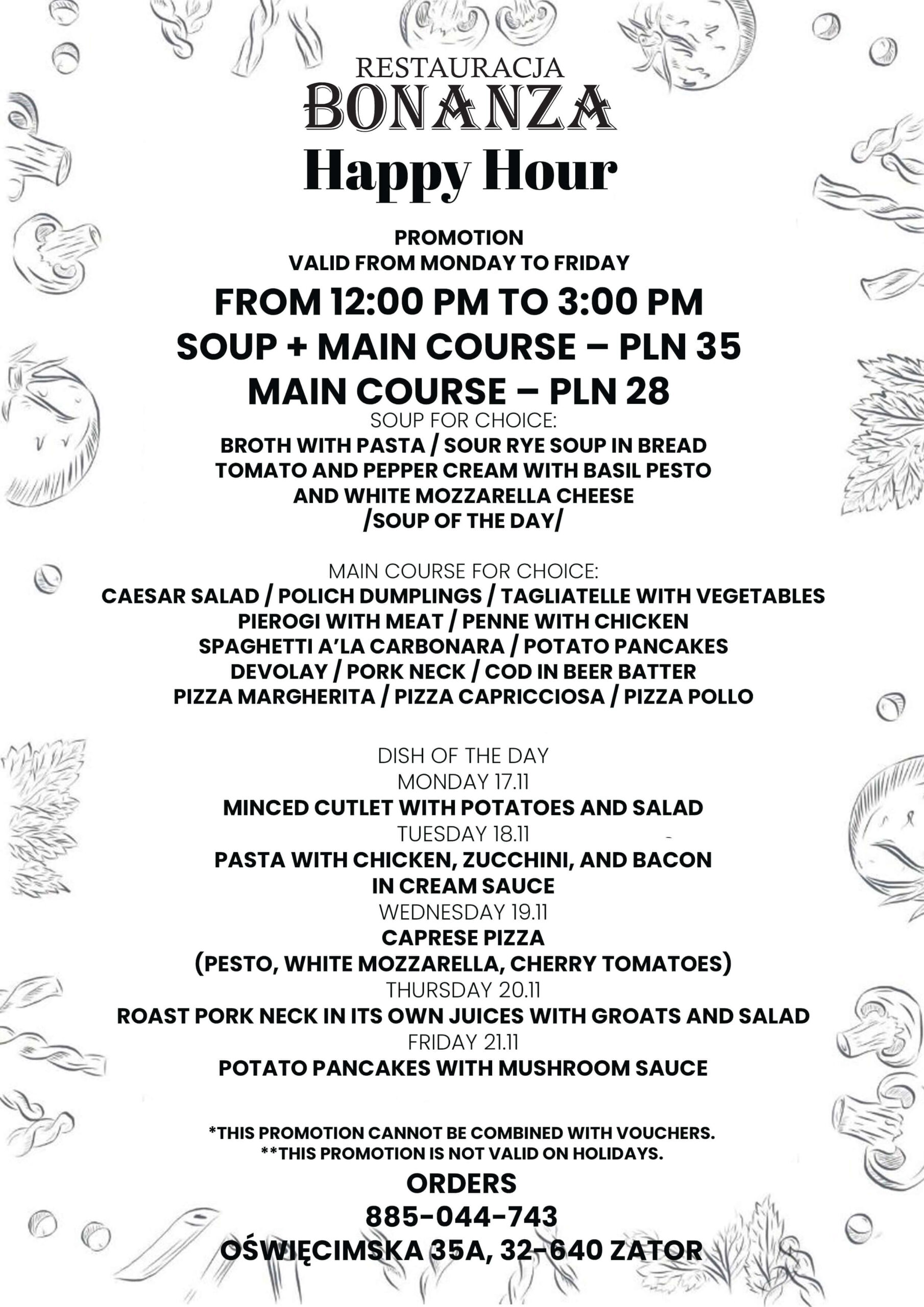V srdci Zatoru, v malebném Malopolském vojvodství, se nachází Western Camp Resort a restaurace Bonanza. Toto výjimečné místo spojuje tradici s moderností a nabízí prosklené interiéry a dřevěné prvky. Šéfkuchař se svým týmem každý den vytváří kulinářská mistrovská díla a dbá na každý detail vaší návštěvy. Restaurace disponuje více než 200 místy a hosté si mohou odpočinout v baru nebo na terase. Pořádáme také příležitostné akce a obchodní setkání, kterým dáváme jedinečný charakter.