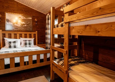 chatka pro 6 os. – 1 x manželská postel, 1 x patrová postel, 2 x jednolůžko na mezipatře