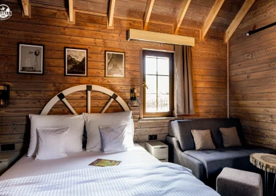 To je náhražka Divokého západu přenesená na hladinu vody. Zvenku domky okouzlují dřevěnou, stylizovanou westernovou zástavbou, která zapadá do atmosféry celého resortu. Interiéry naopak nabízejí moderní vybavení, které zajistí pohodlí jak rodinám s dětmi, tak všem těm, kteří po dni plném zážitků hledají komfortní odpočinek ve výjimečném prostředí.