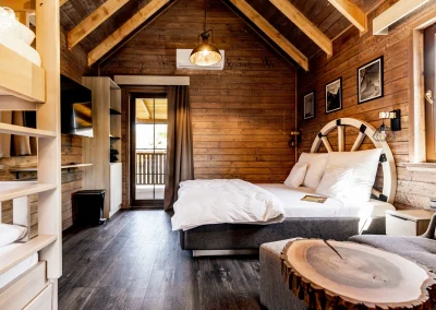 Pobyt v domcích na vodě je skvělá volba pro všechny, kteří plánují intenzivní den plný zážitků v Energylandii a sní o večerním uklidnění ve výjimečném prostředí. Stačí pár minut, abys se z hlučného zábavního parku přenesl do soukromého přístavu Western Camp Resort, kde na hosty čekají pohodlné houseboats. Po celém dni zábavy na horských drahách a vodních atrakcích návrat do domku plujícího na vodě umožňuje nabít baterky — ať už při šálku čaje na terase, nebo v pohodlném obývacím pokoji s LCD televizorem a přístupem k Wi-Fi.