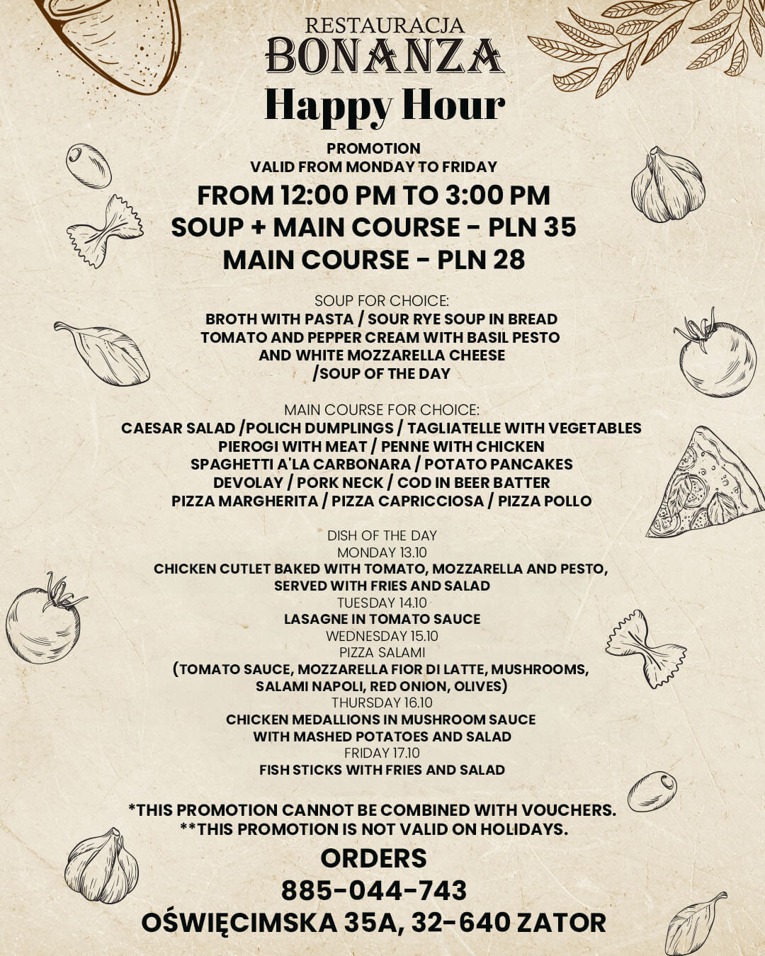 tel: 885 044 743, e-mail: biuro@restauracjabonanza.pl